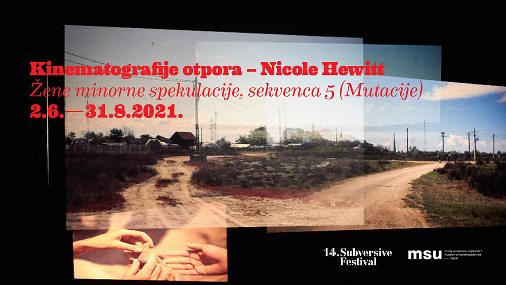 Novo izdanje Kinematografija otpora predstavlja Nicole Hewitt i multimedijalnu izložbu Žene Minorne Spekulacije, sekvenca 5 (Mutacije) koja kroz osobni narativ pripovijeda o nevidljivoj i prešućenoj povijesti prikaza žena. Otvorenje izložbe održat će se u srijedu 2. lipnja u 19 sati u MSU Black Boxu, a izložba ostaje otvorena do 31. kolovoza 2021.