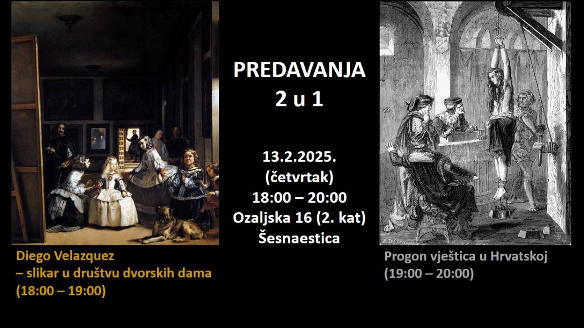 Od 18:00 - 19:00 sati predavanje „Diego Velazquez - slikar u društvu dvorskih dama“, predavačica je Martina Božić