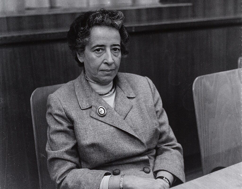 Knjiga Eichmann u Jeruzalemu: izvještaj o banalnosti zla (1963.) nastaje nakon što je 1961. godine u Jeruzalemu pratila suđenje nacističkom zločincu Adolfu Eichmannu za časopis The New Yorker. Pod naslovnom sintagmom koju je pri tome skovala podrazumijevala je zlo koje ne proizlazi iz čudovišnosti čovjeka, već upravo iz njegove prosječnosti.