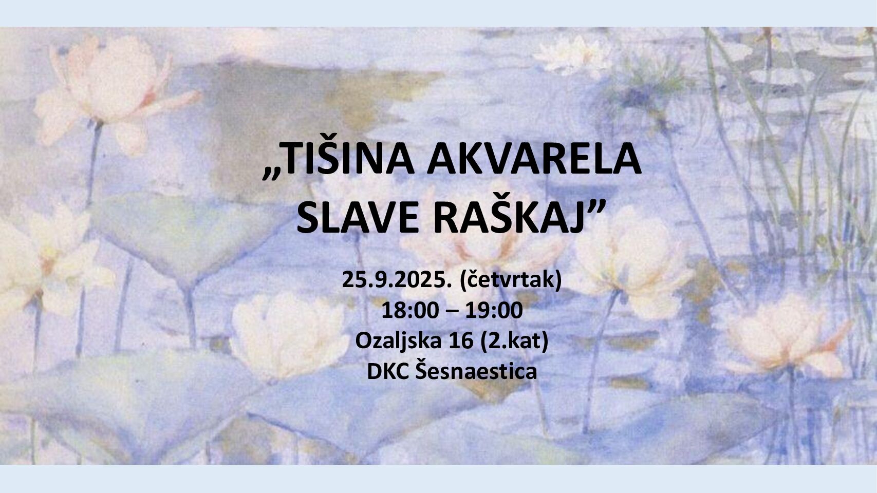 najave# povijest umjetnosti Predavanje: „Tišina akvarela Slave Raškaj“ 25.09.2025. 18:00 DKC Šesnaestica, Ozaljska 16, Zagreb