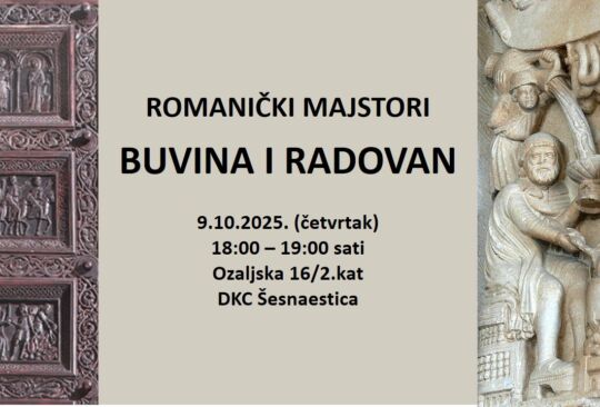 najave# povijest umjetnosti Romanički majstori: Buvina i Radovan 09.10.2025. 18:00 DKC Šesnaestica, Ozaljska 16, Zagreb